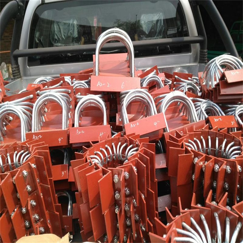 A2U型螺栓带角钢是管道安装中*常用的一种螺栓,用于固定管道,和A1U型螺栓的区别就在与它的下面加了一块角铁。U型螺栓带角钢的材料一般为Q235B碳钢和304不锈钢两种,上面一部分U型螺栓材质为Q235B,表面处理为冷镀锌,下面角铁的材质为Q235B。管卡位置和数量按照设计需要确定。化工标准的U型螺栓(U型管卡/U型管夹)由中国成达化学工程公司编制,由国家石油和化学工业局批准,其化工部标准图号分别为A2-1(公制管用)A2-2(英制管用)A2-3(铸铁管用)。